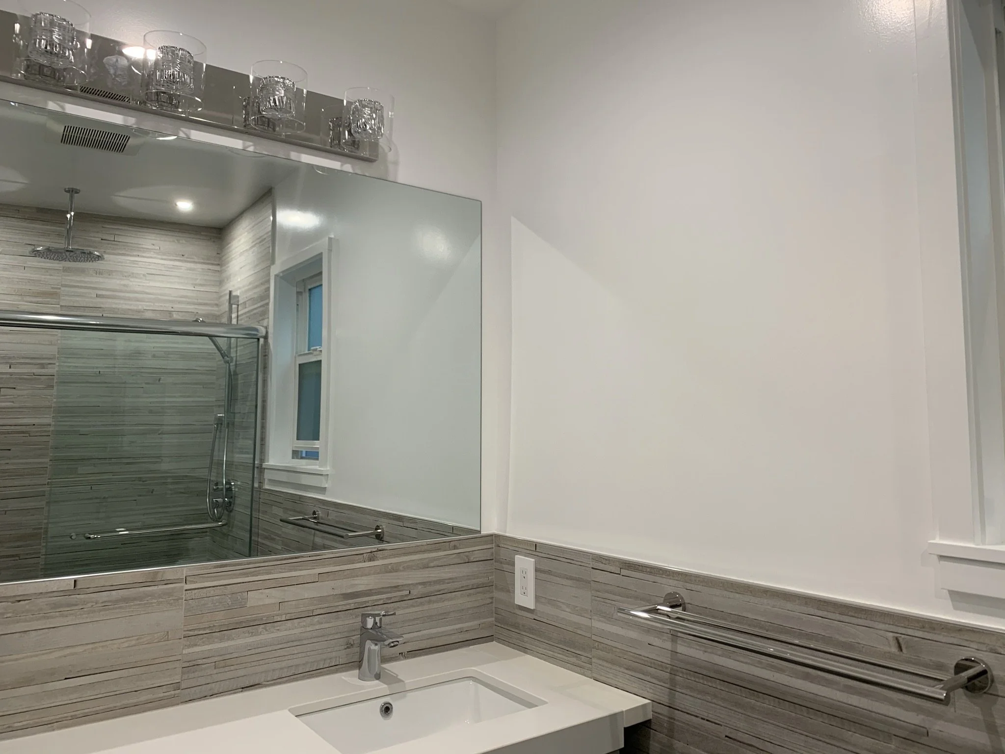 Full kitchen remodeling - Full bathroom remodeling - Recessed lights - Interior and exterior painting - New doors and windows - Refinished redwood floors - Matt black door handles - Customized built-in closet - Double sink vanity - Chrome hardware finishes